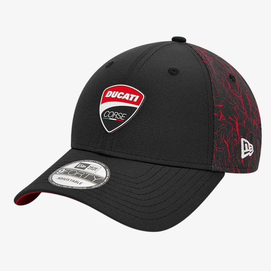 Von New Era gefertigte DC Crinkle Cap, Ducati Corse schlicht auf der Vorderseite, Rückseite im modernen unregelmäßigen Muster in rot und schwarz. - Material: 100 % Polyester - Art-Nr: 987712353